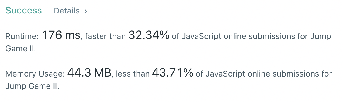 위의 memoization에 사용한 minCount배열은 구간별로 적용되는 정보다. 따라서 모든 iteration에서 필요한 정보가 아니라 점프 별로 최대 이동 가능한 좌표가 있고 이는 점점 갱신되는 데이터로 현재 점프의 최대값과 다음 점프의 최대 값만을 통해 답을 구할 수 있다.