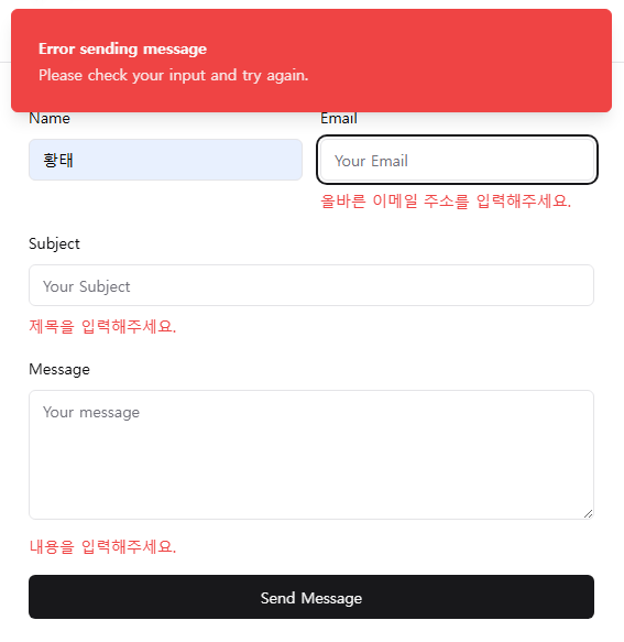 제 포트폴리오의 Contact Form을 중심으로 실용적인 구조 설계법을 정리해보겠습니다.