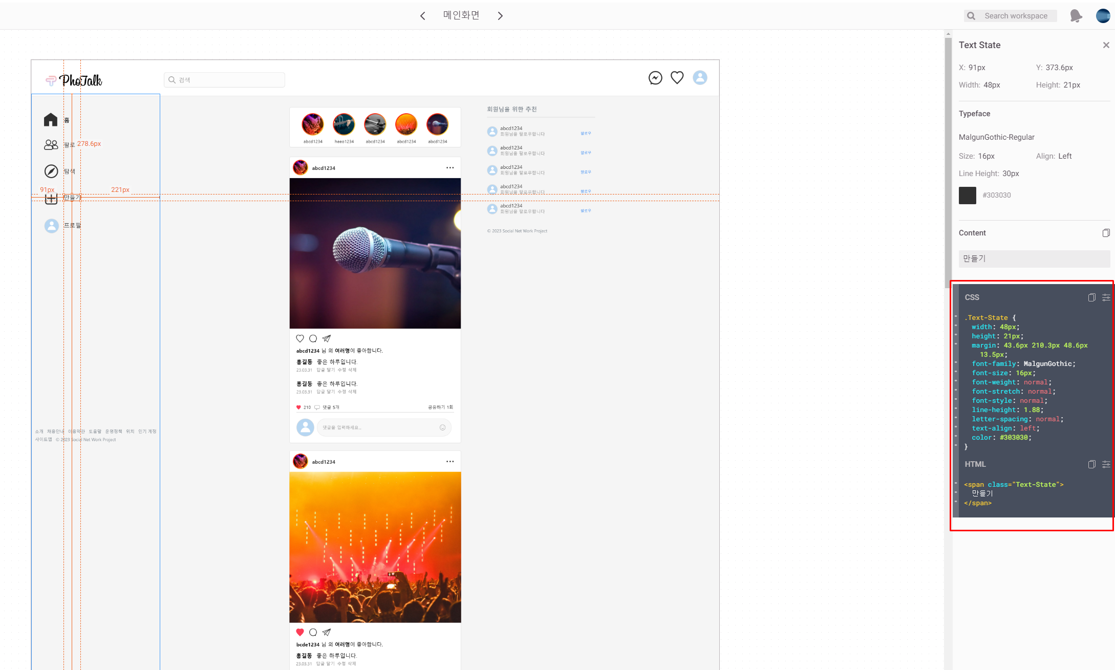위와 같이 css 값들을 확인할 수 있고
