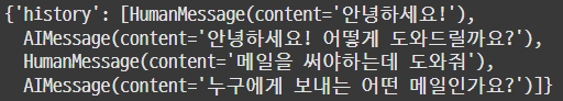 memory.save_context({"input": "메일을 써야하는데 도와줘"},