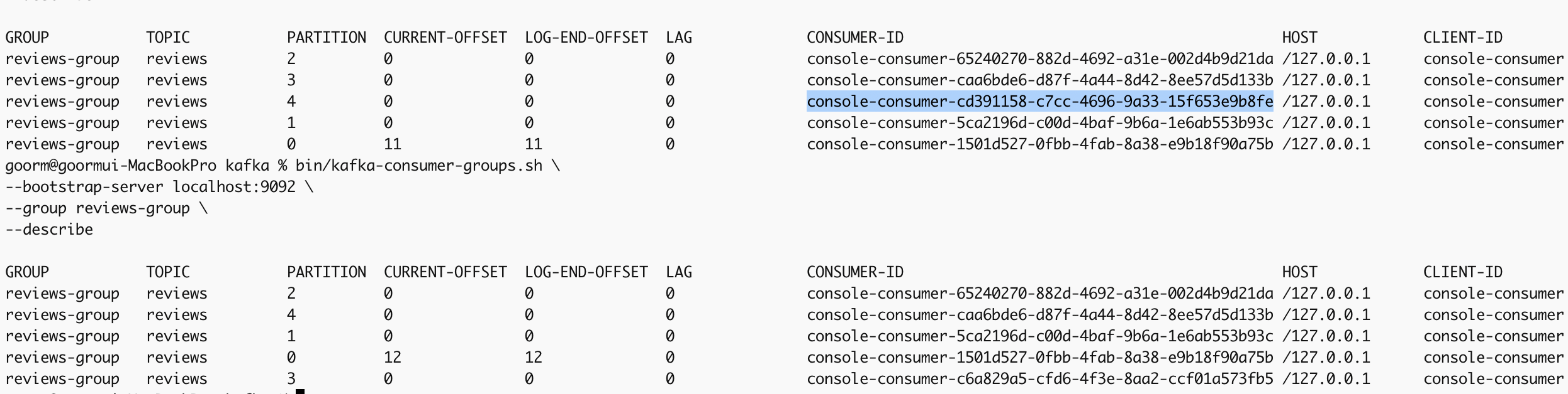 partition 0, 1, 2에 새로운 consumer가 할당된것을 볼 수 있다.