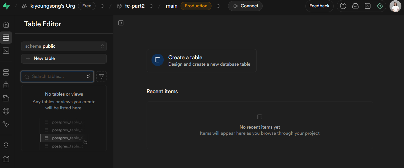 강의를 듣던중 Remix를 공부하던 중에 Remix에서 통신을 구현하기 위해서는 DB가 있어야 한다고하여 Supabase에 대해서 간략하게 설명을 해주고 테이블 생성 및 데이터 삽입까지 간략하게 정리하고자 한다.