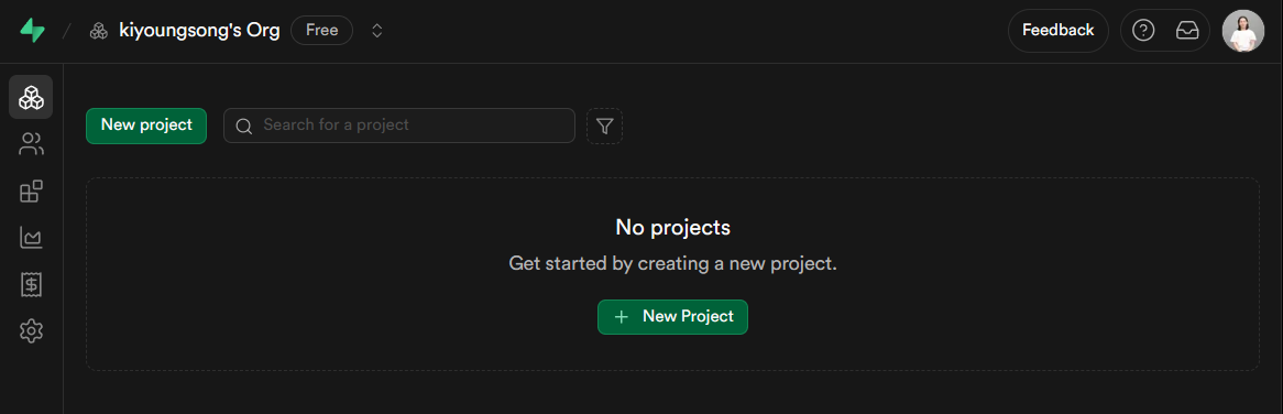 Supabase의 홈페이지에 접속하여 로그인을 진행한다.