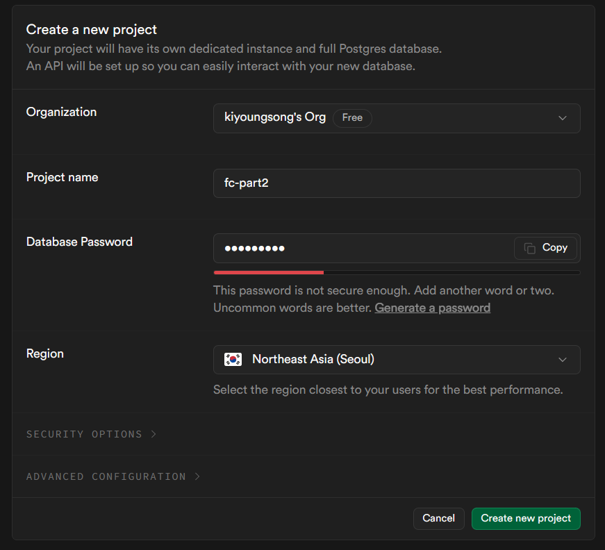 하지만 Supabase는 데이터의 저장 용량을 기준으로 과금체계를 가지고 있어서 사용자가 10배, 100배 늘어나도 저장 용량을 넘지 않으면 추가 요금을 지불하지 않아도 되는 아주 천사같은 친구다.
