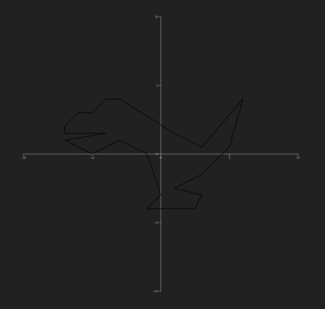 자바스크립트의 d3.js 라이브러리로 축(x,y), 원점이 있는 평면을 통해 공룡을 표현해보았습니다.