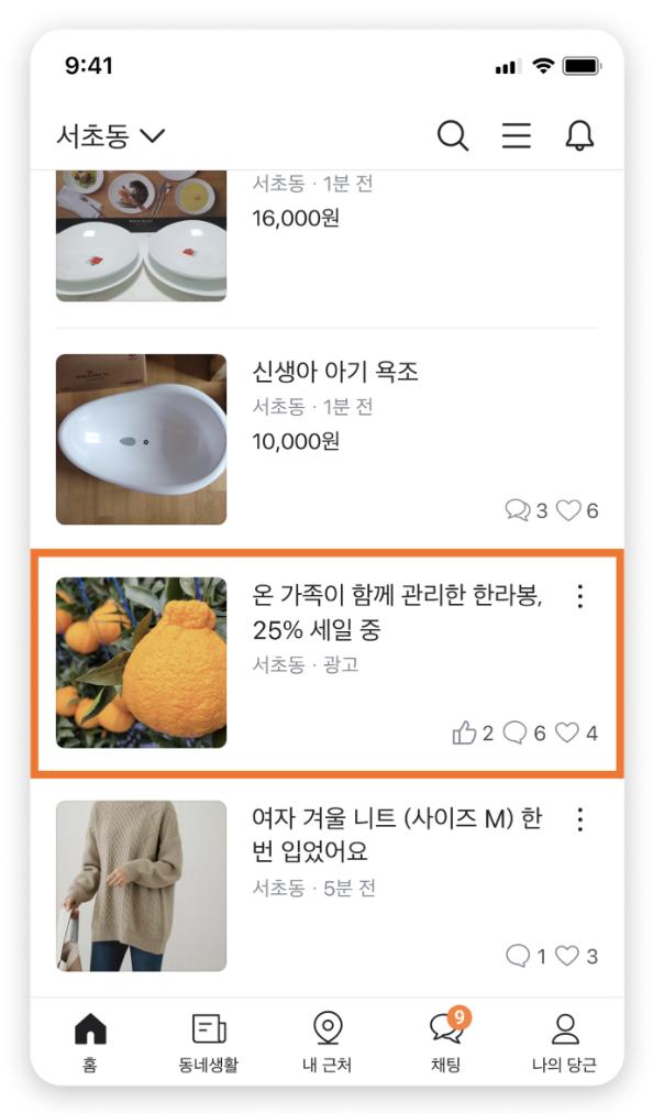 ( 당근의 경우 기존 컨텐츠와 동일한 포맷으로 광고를 넣어 거부감을 줄인 예라고 생각된다 )