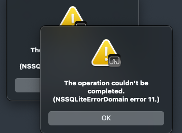 사용 중 위와 같은 에러발생. 해결방법은? sqlite 관련 파일 삭제.