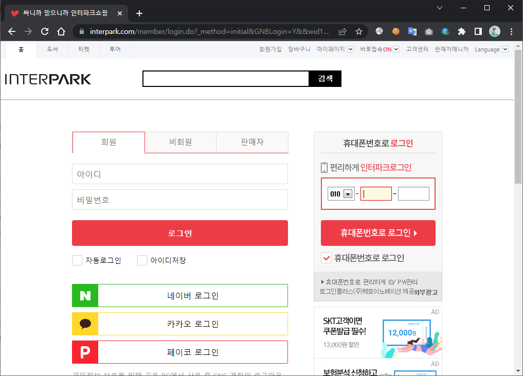 OAuth를 이용하면 아래 그림과 같이 네이버, 카카오오, 페이코 등 타 서비스를 이용하여 로그인을 할 수 있습니다. 또한 가입 시에도 타 서비스를 이용하여 정보를 제공하고 가입을 할 수도 있습니다.