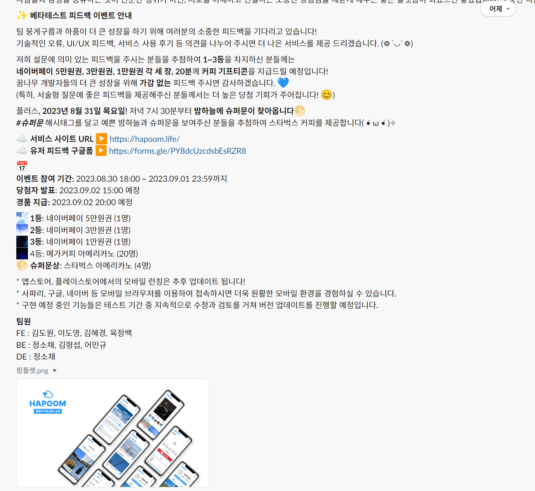 다양한 관점에서 많은 칭찬과 피드백이 들어왔기에 내일은 이를 팀원들과 논의하여