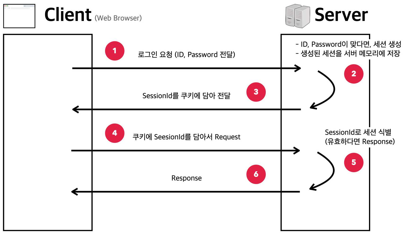 서버가 쿠키를 생성해 클라이언트에 전달하고, 클라이언트는 그 쿠키를 유효한 사이트에만 다시 전달하고, 관리한다.