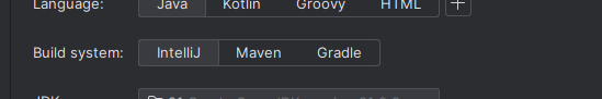 이전까지는 빌드시스템이 IntelliJ, Maven, Gradle 이렇게 3개가 있었던 것 같지만 내가 사용하고 있는 2023.3버전에서는 Maven, Gradle 두 가지만 존재하는 것으로 보인다.
