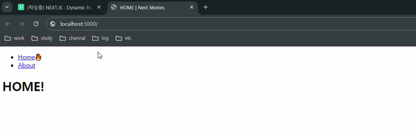 ๋๊ฐ์ ํ์ด์ง๋ฅผ ๋ณด์ฌ์ฃผ๋๋ผ๋ ๋ณ์๋ฅผ ์ด์ฉํ์ฌ ๋ณ์์ ๊ฐ์ ํด๋นํ๋ ํ์ด์ง๋ฅผ ๋ณด์ฌ์ฃผ๋ ๊ฒ์ด ๋ฐ๋ก Dynamic route์ด๋ค.