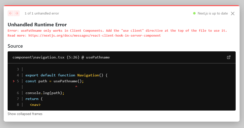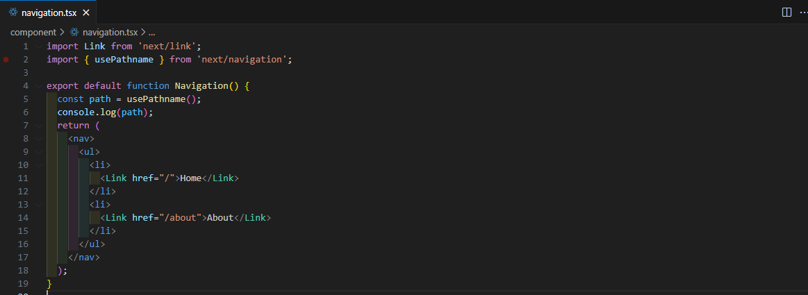 ์ usePathname์ importํ๊ณ , console๋ก path๋ฅผ ์ฐ์ด๋ณธ๋ค.