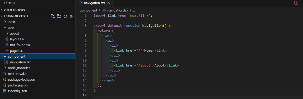ํ๋ก์ ํธ ์ต์๋จ ๋ฃจํธ์ component๋ผ๋ ํด๋๋ฅผ ์์ฑํ๊ณ , ๊ทธ ์์ Navigation.tsx
