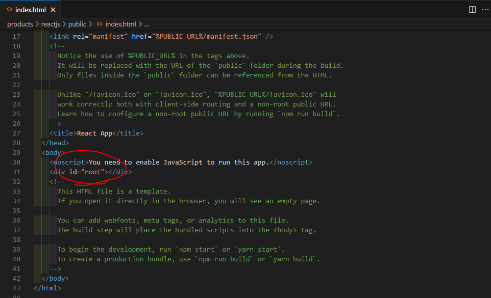 ์ root๋ public์ index.html์์ ๋ณผ ์ ์๋ค.