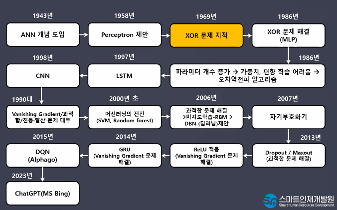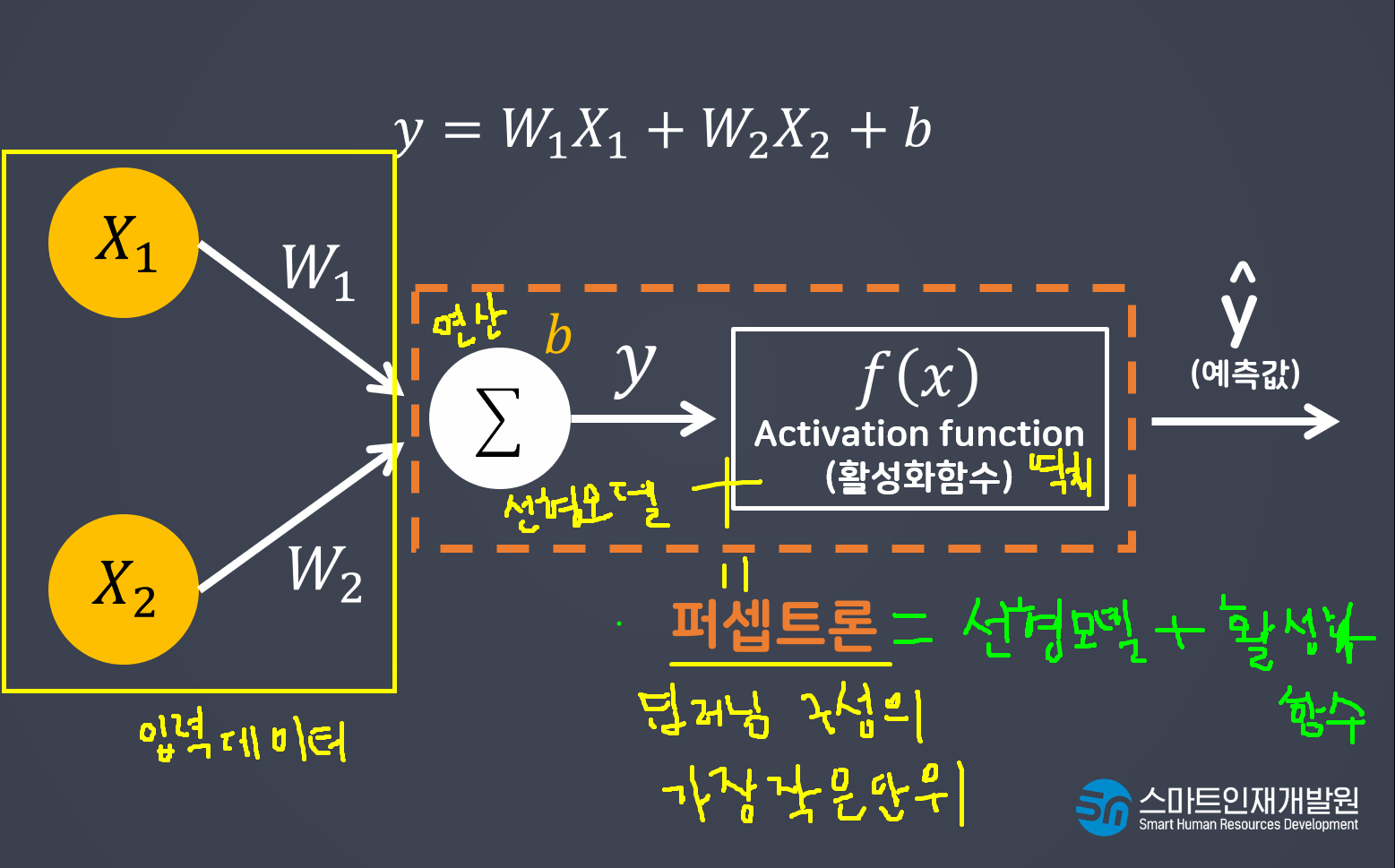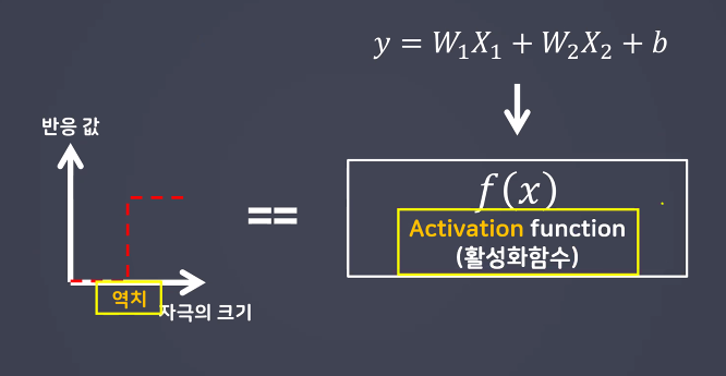 - 초기의 형태: 계단함수 (step function) -> 시그모이드(sigmoid) y = wx+b