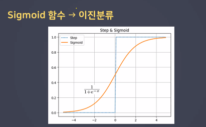 - 이진분류: 시그모이드 분류는 확률값(0~1)으로 변환이 필요하기 때문!