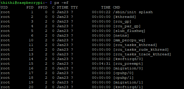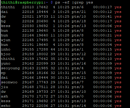 x -> 접속된 터미널뿐 아니라 사용되고 있는 모든 프로세스을 출력