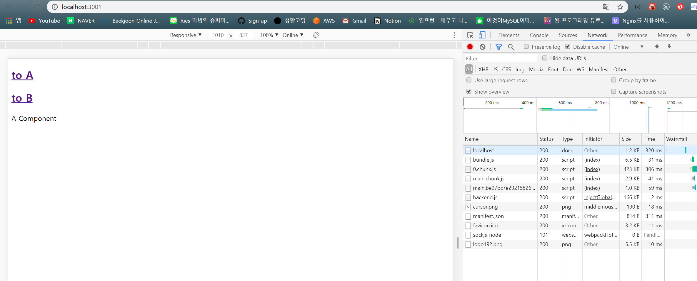 링크를 계속 누르게 되면 처음 클릭 때만 b.js를 가져오고 웹팩이 렌더링을 지시하는 데이터만 가져오게 됩니다.