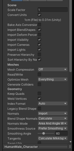 어떤 방식으로 만들어진 포맷이든 유니트에 import할때 유니티 포맷으로 변경해주는데 그 변경하는 과정에서 어떤 것을 가져올지 고를수가 있다.