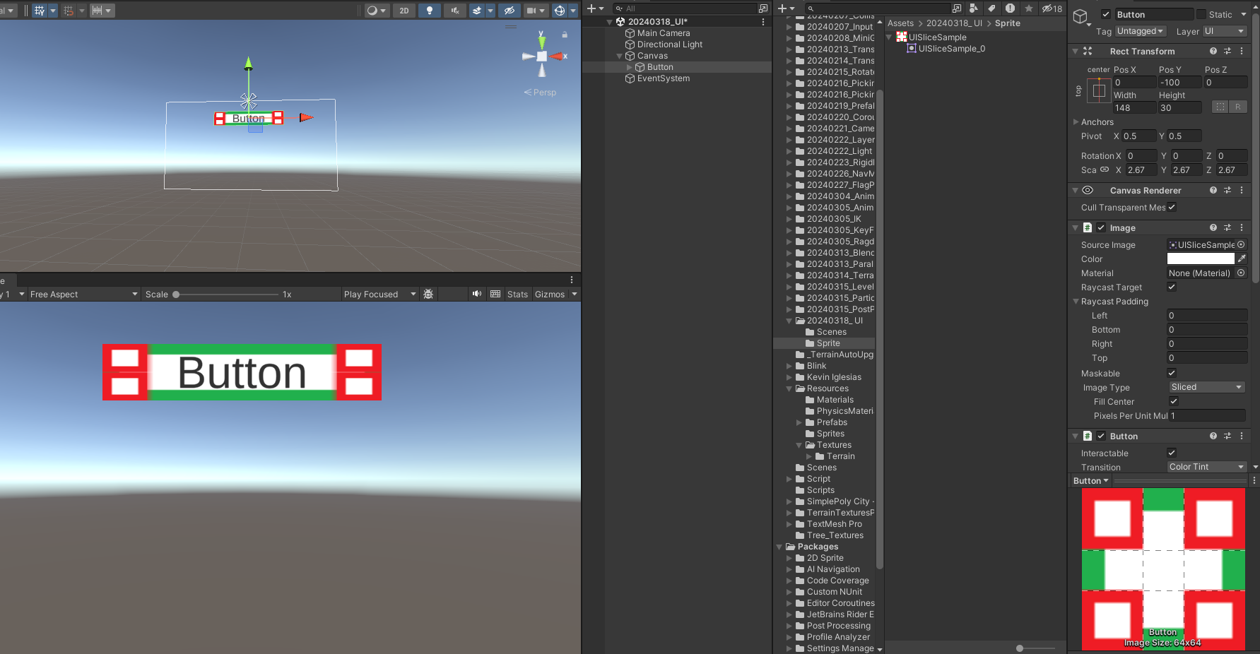 버튼이나 UI는 반드시 Canvas의 하위로 넣어야만 된다.