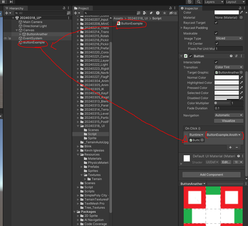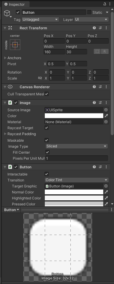 인스펙터에서 버튼을 넣어주면 두개가 출력이 된다. 이게 두번째 방법이다.