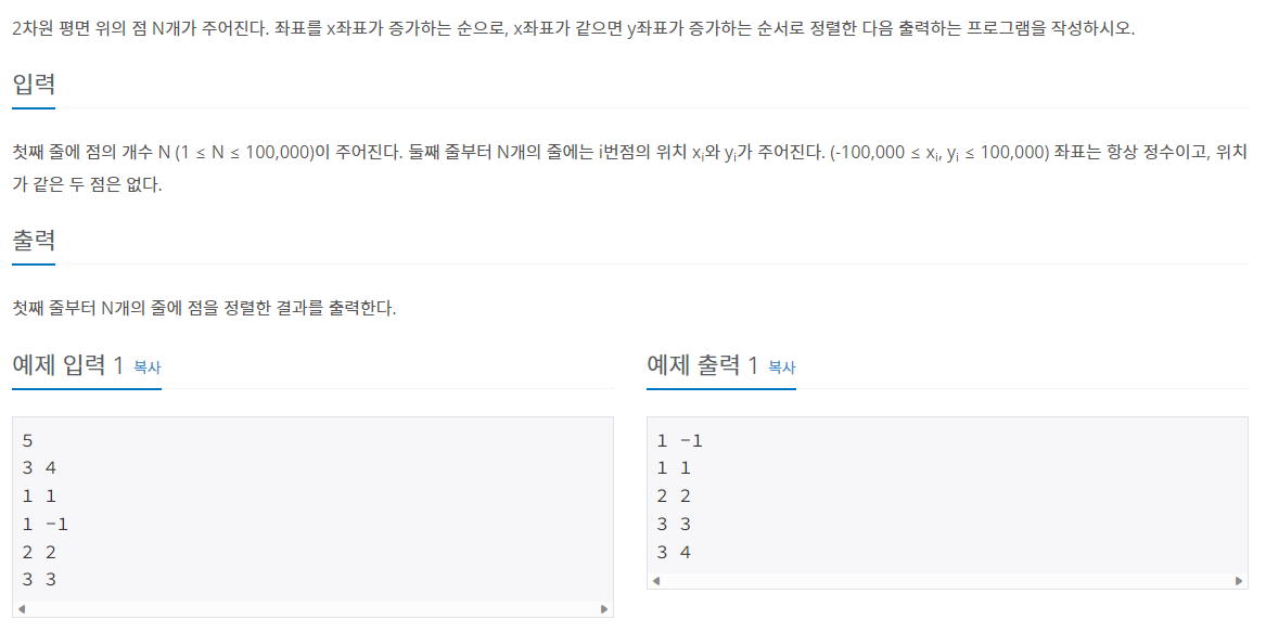 공백을 기준으로 앞 숫자를 먼저 비교한 후, 뒤 숫자를 비교하려 했다.