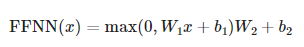 ADD&Norm 를 거친 이후 FFNN(Feed forward neural network) 로 들어감