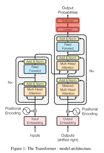 디코더의 최상층을 통과한 벡터들은 Linear 층을 지난 후 Softmax를 통해 예측할 단어의 확률을 구하게 된다.