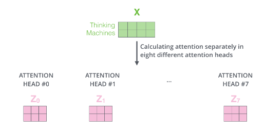 Multi-Head Attention 을 적용하면 여러 개의 Attention 메커니즘을 동시에 병렬적으로 실행
