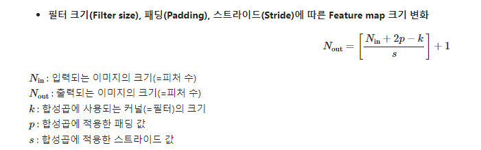 - 합성곱 층에서는 합성곱 필터(Convolution Filter)가 슬라이딩(Sliding)하며 이미지 부분부분의 특징을 읽어나감 (warm-up영상 참고)