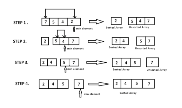 - 가장 작은 노드를 선택 후 왼쪽부터 가장 작은노드와 비교하며 교환하는 방식