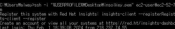 공인인증서라고 생각하면 이해하기쉽다. (ssh는 우리 로컬컴퓨터에서 cmd로 컴퓨터에 명령을 내릴수있는것과 같다 서버에 원격으로 접속해서 명령을 내리는것이다.) pem키는 절대 유출되면 안된다.