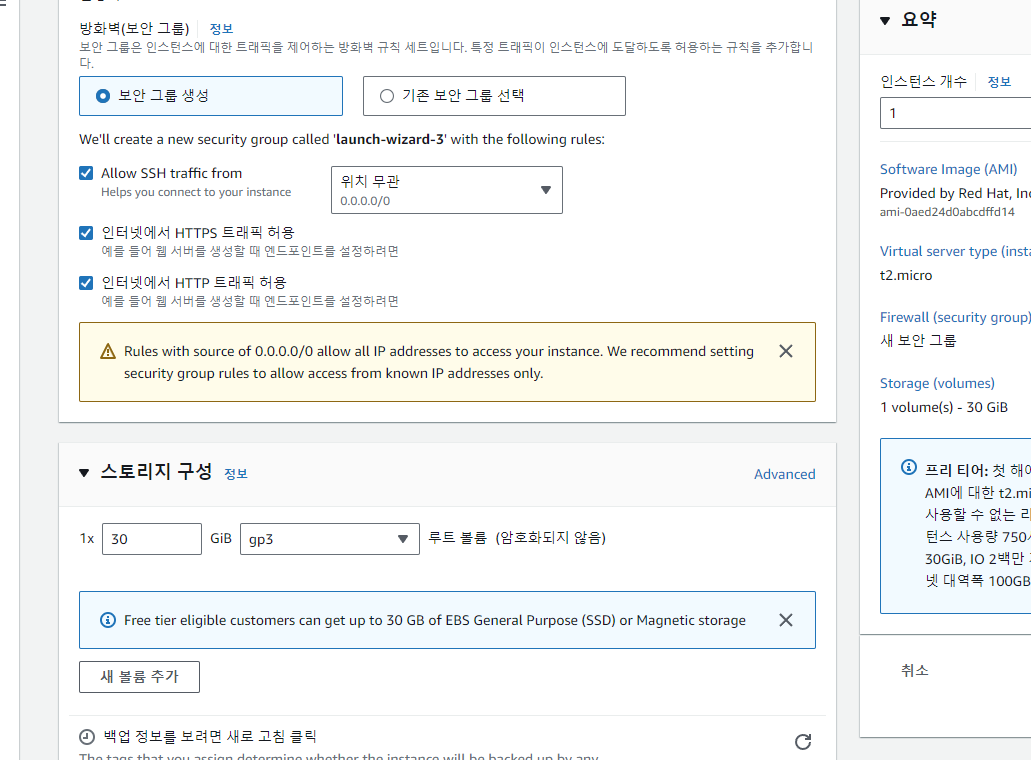 그리고 보안그룹에서 Allow SSH traffic from 이것은 체크가 되어있을것이다