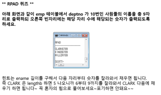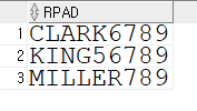 SELECT RPAD(ename,9,SUBSTR('123456789',LENGTH(ename)+1)) "RPAD"