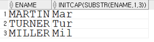 SELECT ename, INITCAP(SUBSTR(ename,1,3))