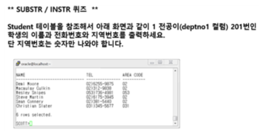 SELECT name, tel, SUBSTR(tel,1,INSTR(tel,')',1,1)-1) "AREA CODE"