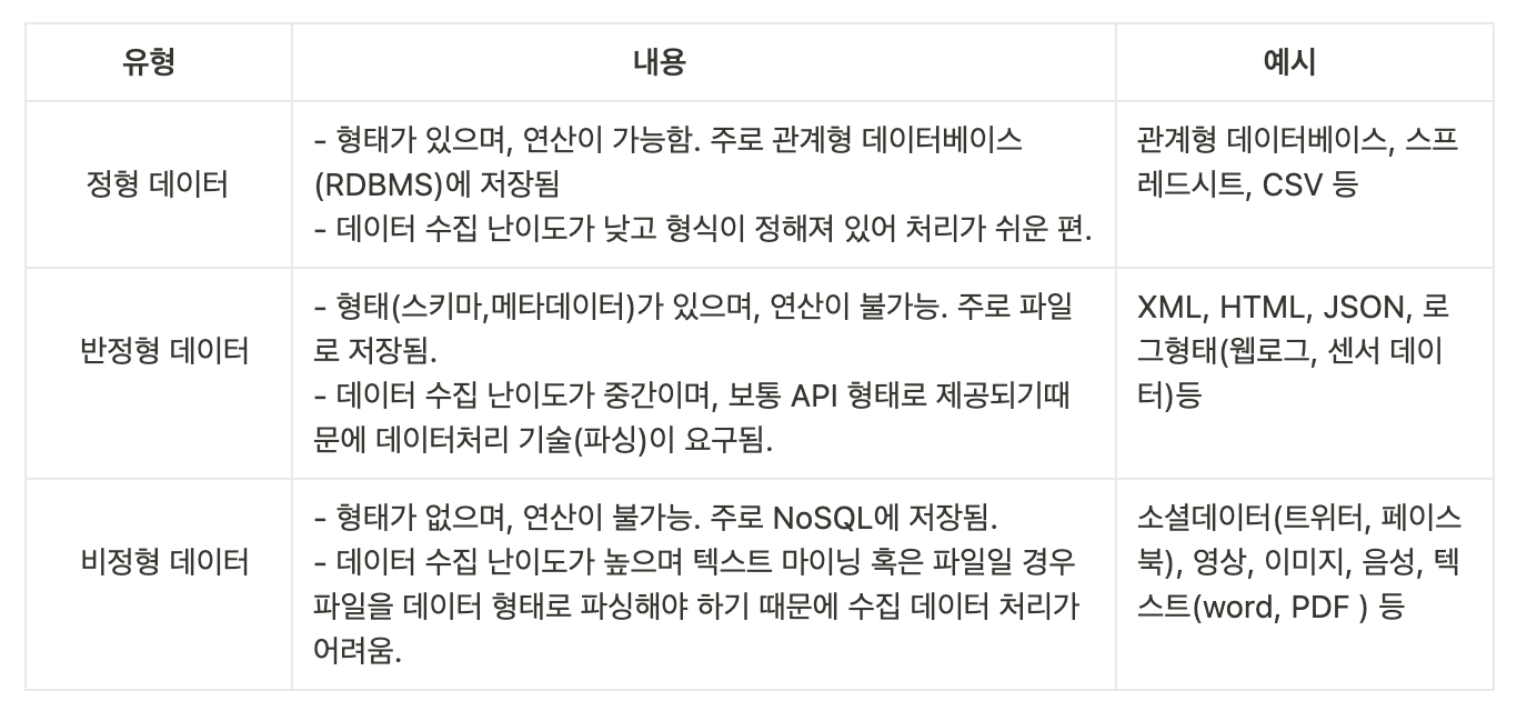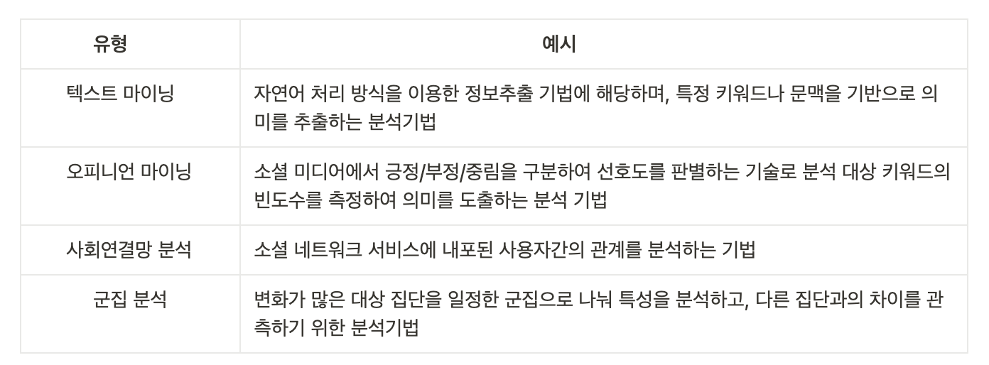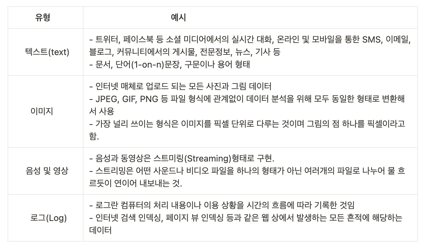 비정형 데어 마이닝의 유형은 아래와 같다.