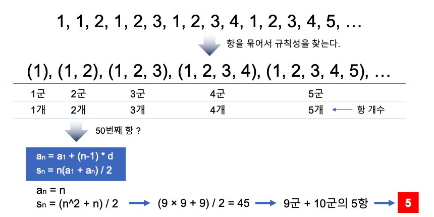 - 여러 개의 항을 묶었을 떄 규칙성을 가지는 수열
