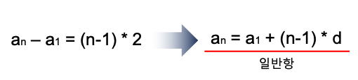 - 등차 수열 규칙성을 이용해서 일반항을 구할 수 있다.