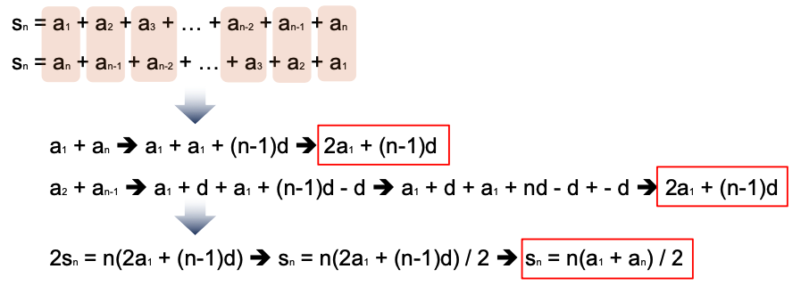 - 규칙성을 이용해서 모든 항들의 총합을 구할 수 있다.