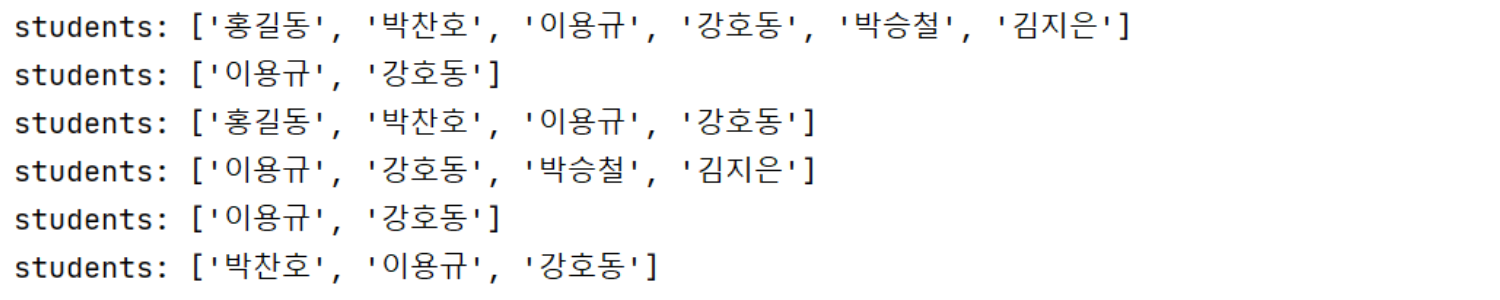 students = ['홍길동', '박찬호', '이용규', '강호동', '박승철', '김지은']