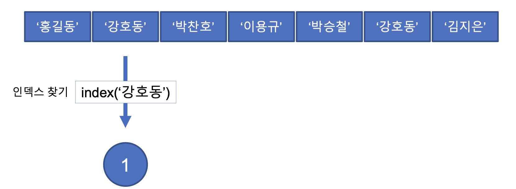 - index(item) 함수를 item의 인덱스를 알아낼 수 있다.