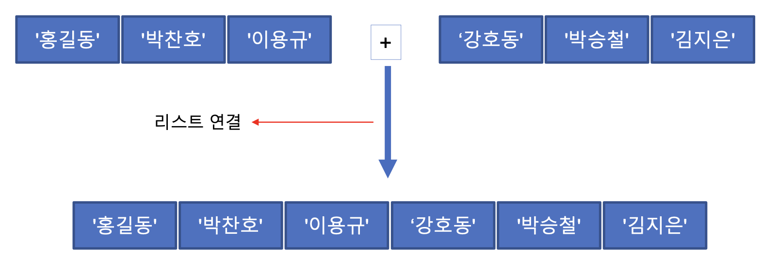 - 덧셈 연산자를 이용해서 리스트를 연결할 수도 있다. (list3)