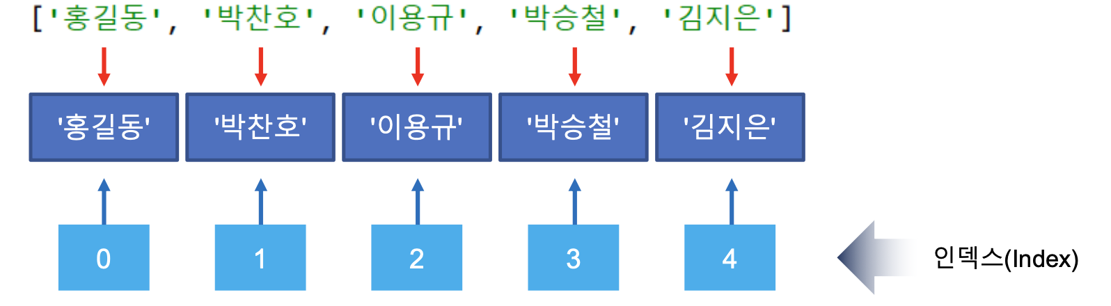 - 리스트 아이템은 인덱스를 이용해서 조회 가능하다.