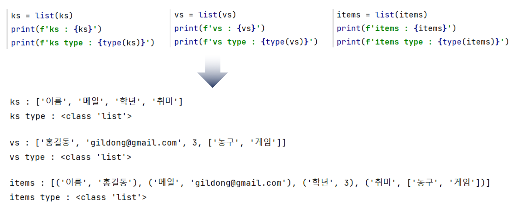 - 리스트로 변환하기