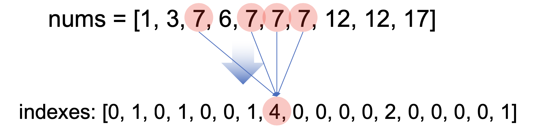nums = [1, 3, 7, 6, 7, 7, 7, 12, 12, 17]