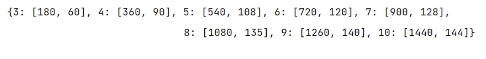 - 삼각형부터 십각형까지의 내각의 합과 내각을 딕셔너리에 저장하는 프로그램을 만들어보자.