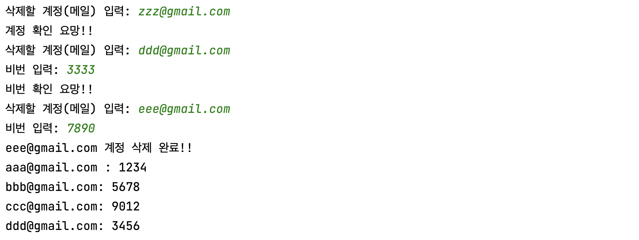 - 딕셔너리를 이용해서 5명의 회원을 가입 받고 전체 회원 정보를 출력하고 삭제하는 프로그램을 만들어보자.