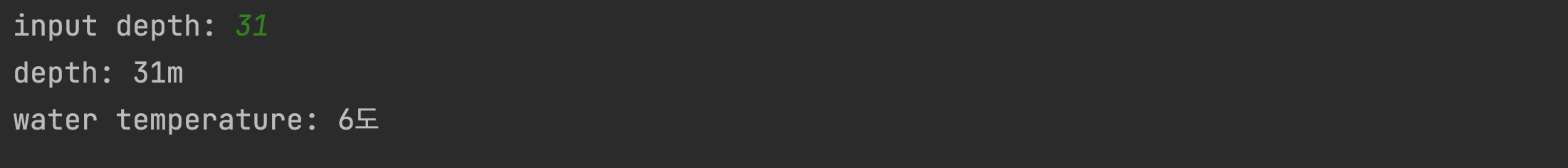 print(f'depth: {depth}m')